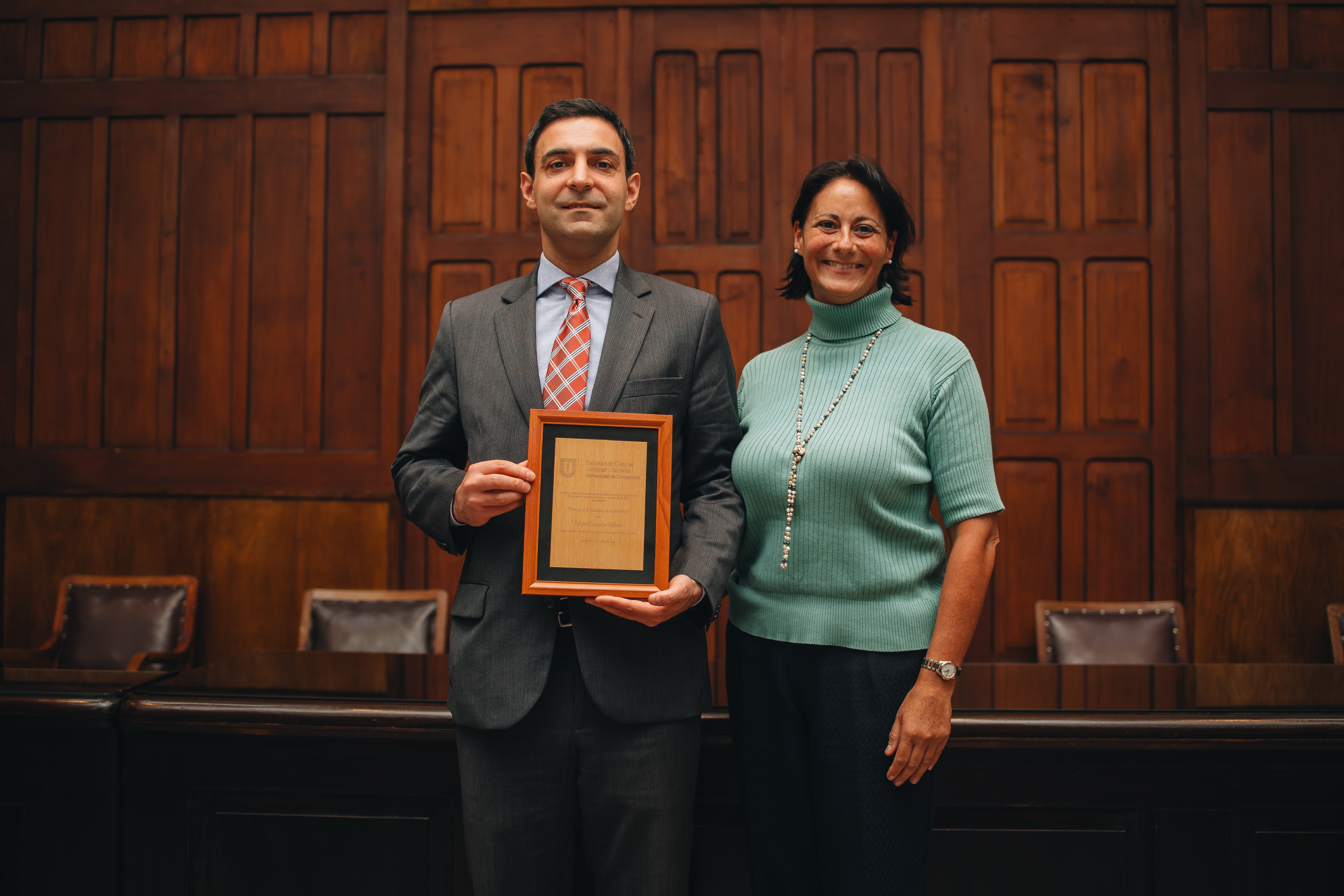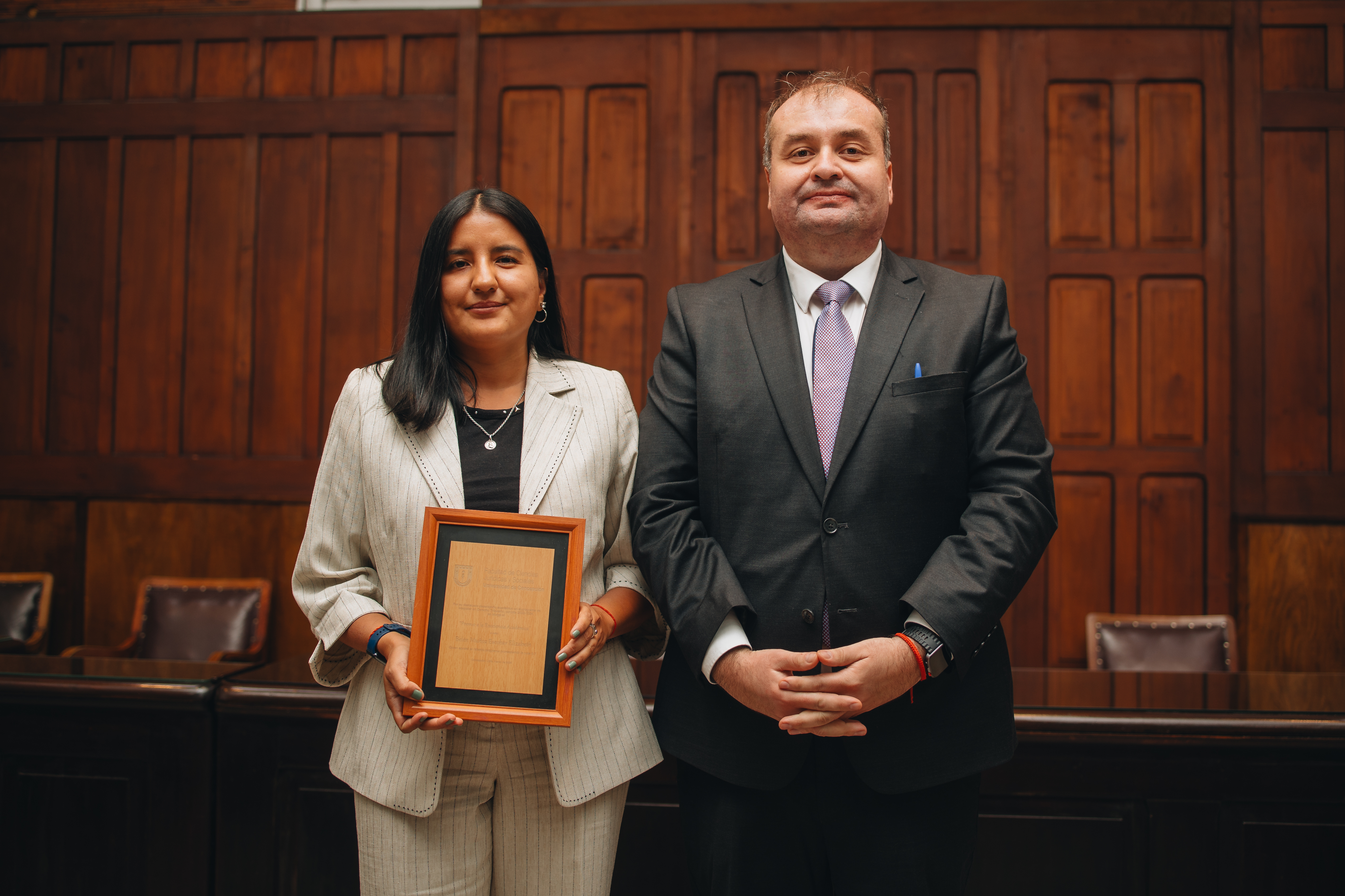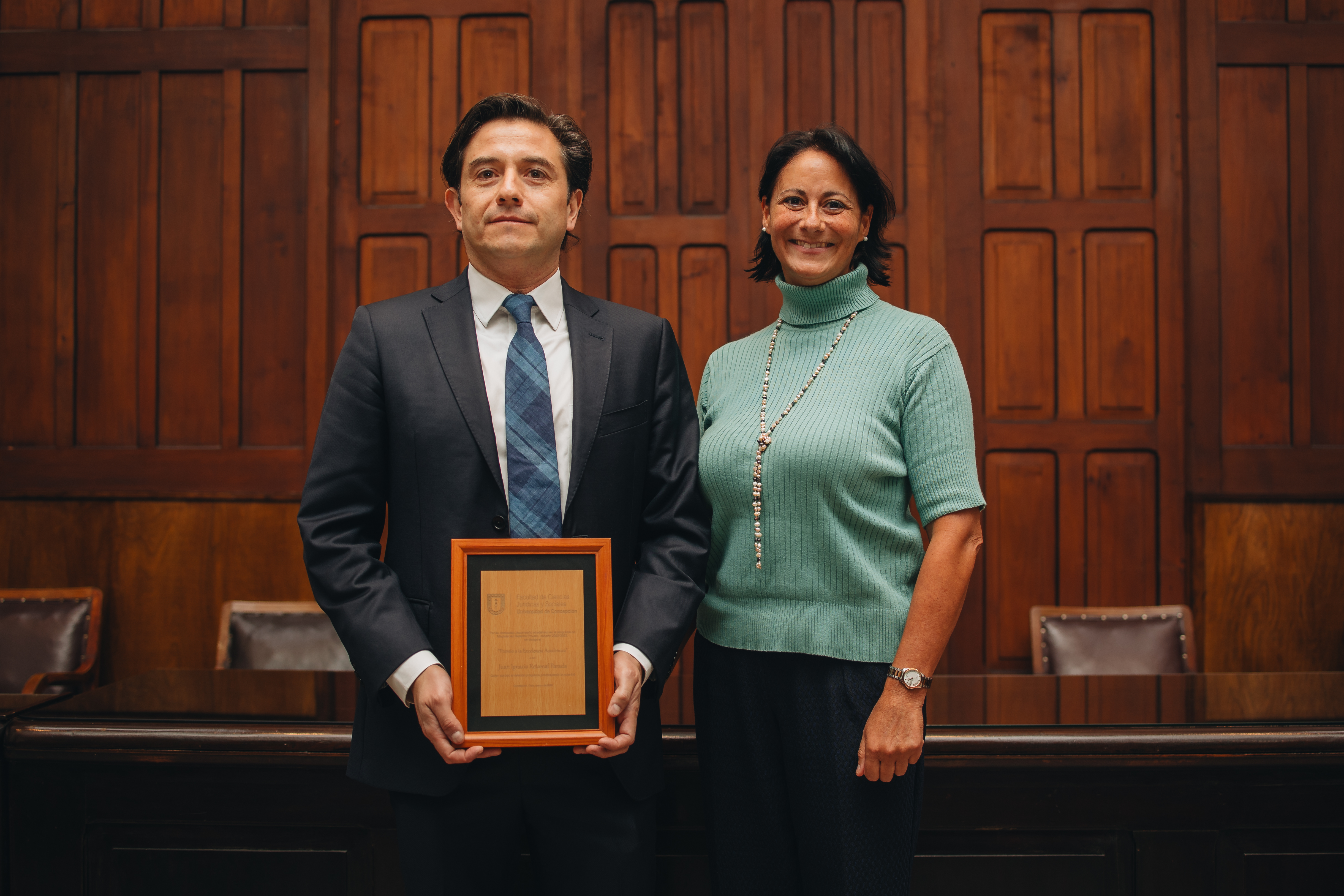 La ceremonia también contempló la entrega de reconocimientos a la excelencia académica, distinción otorgada a quienes obtuvieron los mejores promedios en sus respectivos programas. En esta ocasión, fueron reconocidos Marcela Méndez Gutiérrez, del Magíster en Derecho del Trabajo y Previsión Social; Belén Muñoz Escobar, del Magíster en Derecho Tributario; Felipe Chauriye Rabah y Juan Ignacio Retamal Parada, del Magíster en Derecho Privado; y Juan Ignacio Navarrete Jara, del Magíster en Derecho Penal y Procesal Penal.