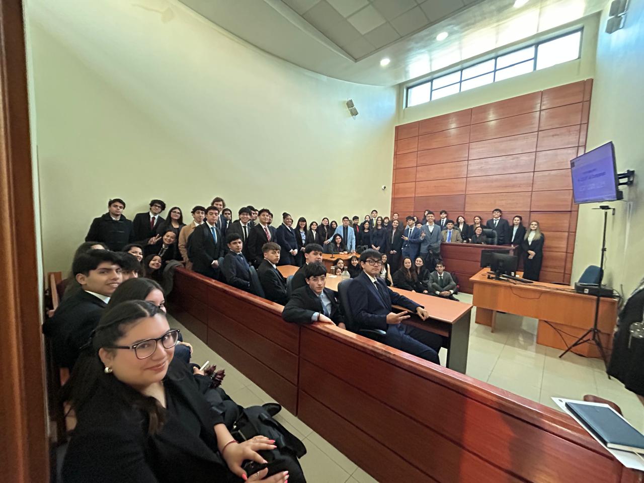 Durante la jornada, las y los estudiantes tuvieron la oportunidad de presenciar la vista de causas en tres salas del tribunal, acercándose de manera directa al funcionamiento del sistema judicial y a la labor jurisdiccional.